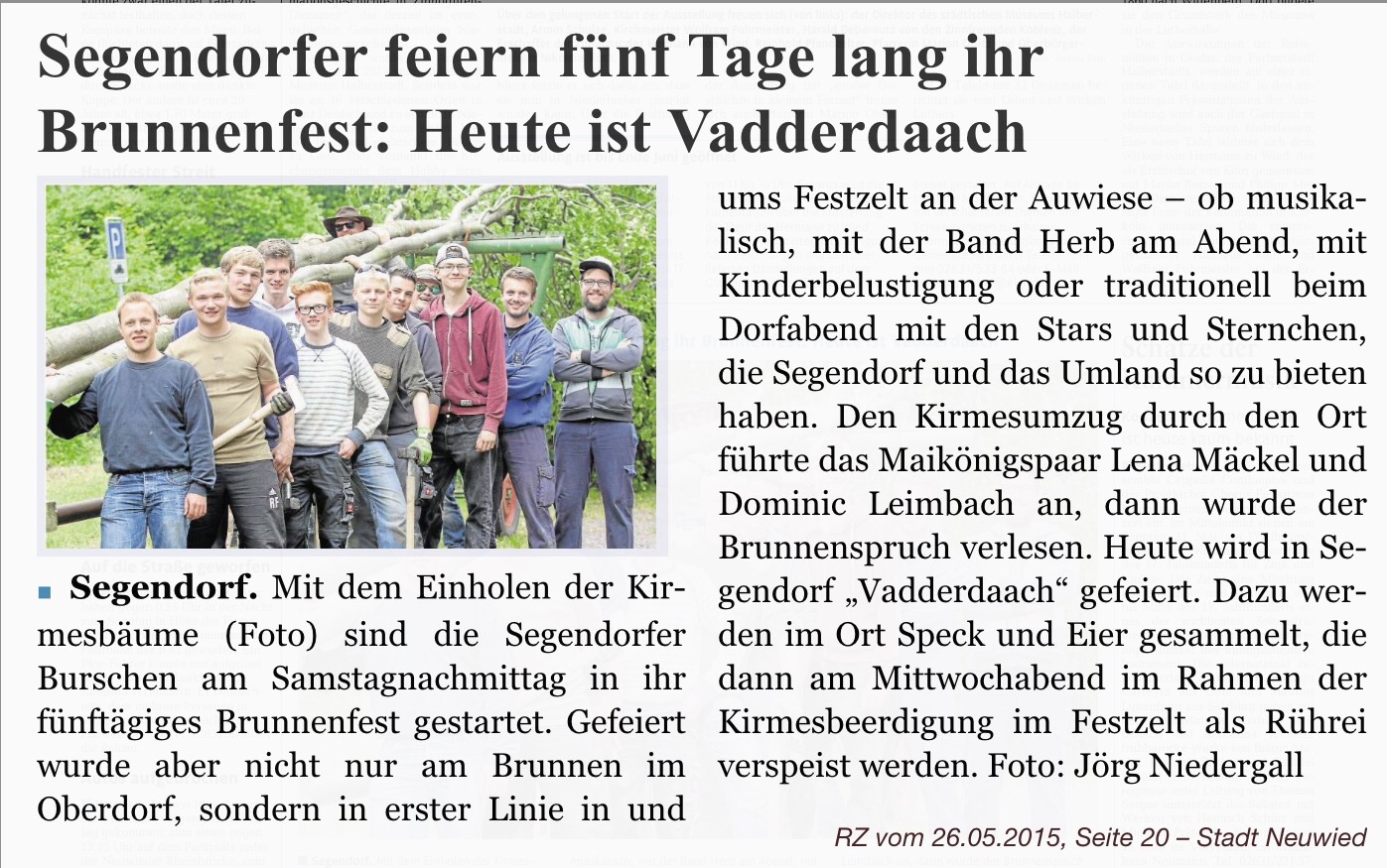 AktuellesBV 1881 Segendorf Segendorfer Pfingstkirmes 2015 Samstag, 23. Mai 2015 M.C. Ein Bericht aus der Rheim-Zeitung